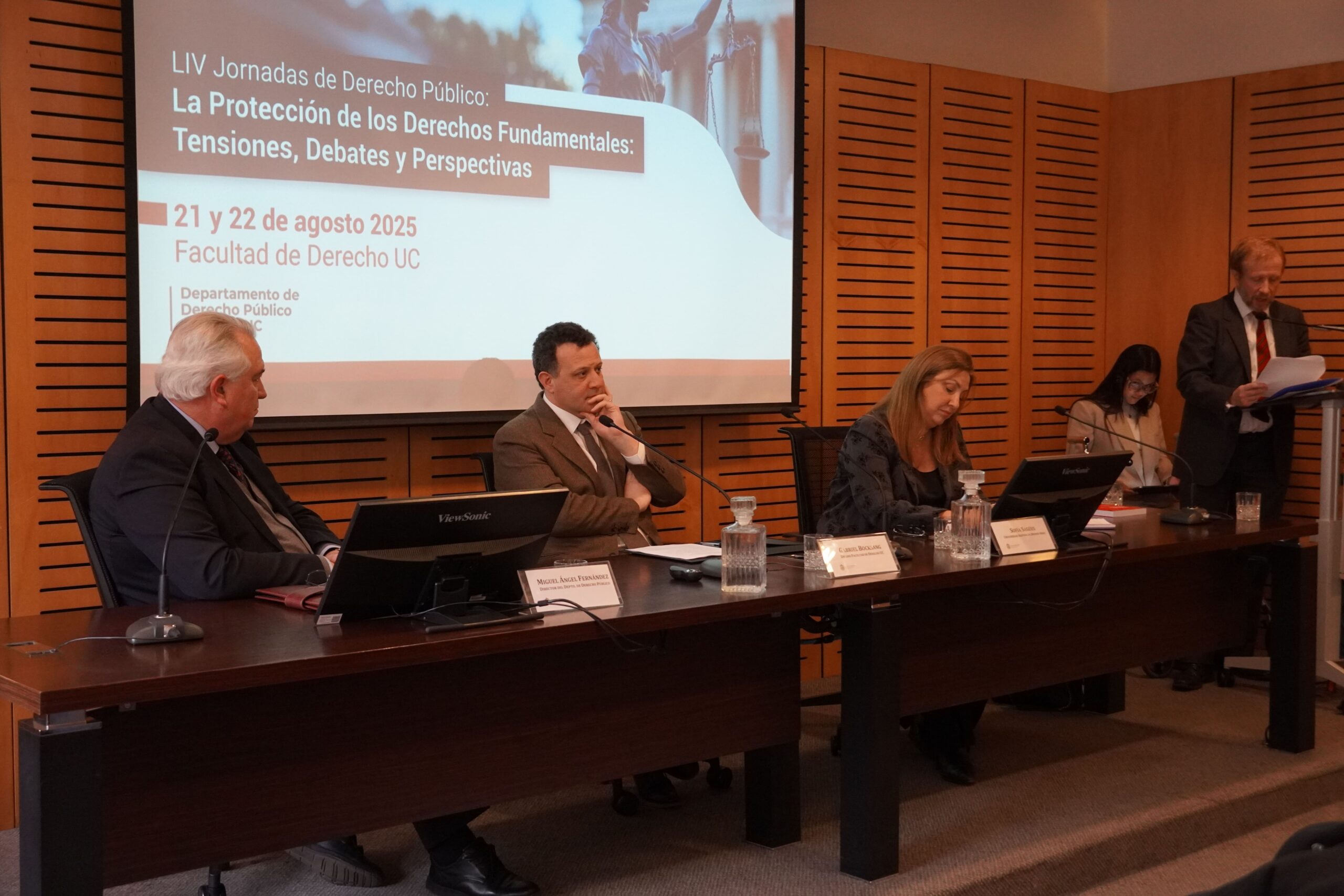 La mitad del Pleno de Ministras y Ministros del Tribunal Constitucional (TC), participó con ponencias en esta actividad académica dedicada a “La Protección de los Derechos Fundamentales: Tensiones, Debates y Perspectivas”. El encuentro fue organizado, en esta oportunidad, por la Pontificia Universidad Católica de Chile. Participaron con ponencias las ministras María Pía Silva Gallinato, Catalina Lagos Tschorne, Marcela Peredo Rojas y el Ministro Miguel Ángel Fernández, quien presidió la Comisión Organizadora en su calidad de Director del Departamento de Derecho Público de la Facultad de Derecho PUC, quienes estuvieron presentes en la actividad que reunió a 125 expositores entre el 21 y 22 de agosto de 2025 en Santiago.