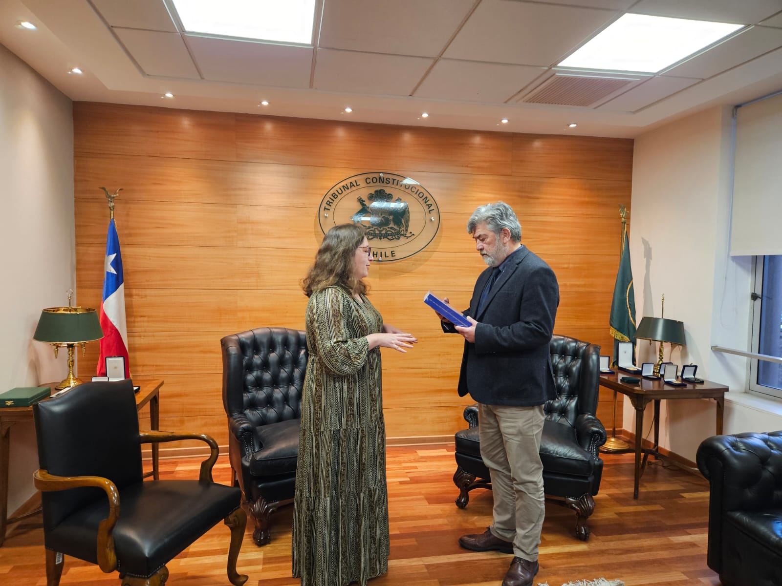 A lo largo del encuentro, Ljubetic y quien encabeza este Tribunal dialogaron sobre diversos aspectos relacionados con el funcionamiento de ambos órganos estatales. Una vez finalizada la visita, la Ministra Marzi le entregó a la principal autoridad del INDH una copia del libro Constituciones políticas de la República de Chile: 1810 – 2024.