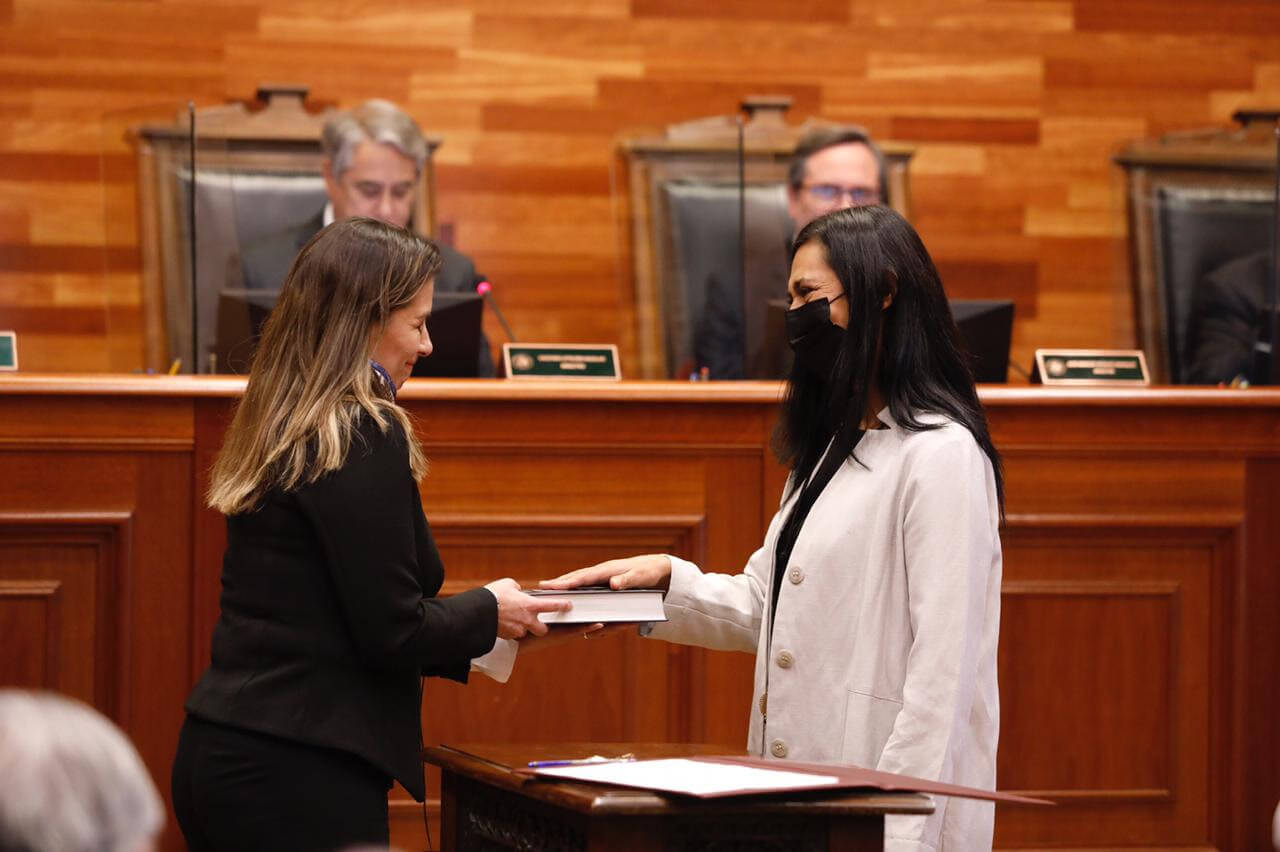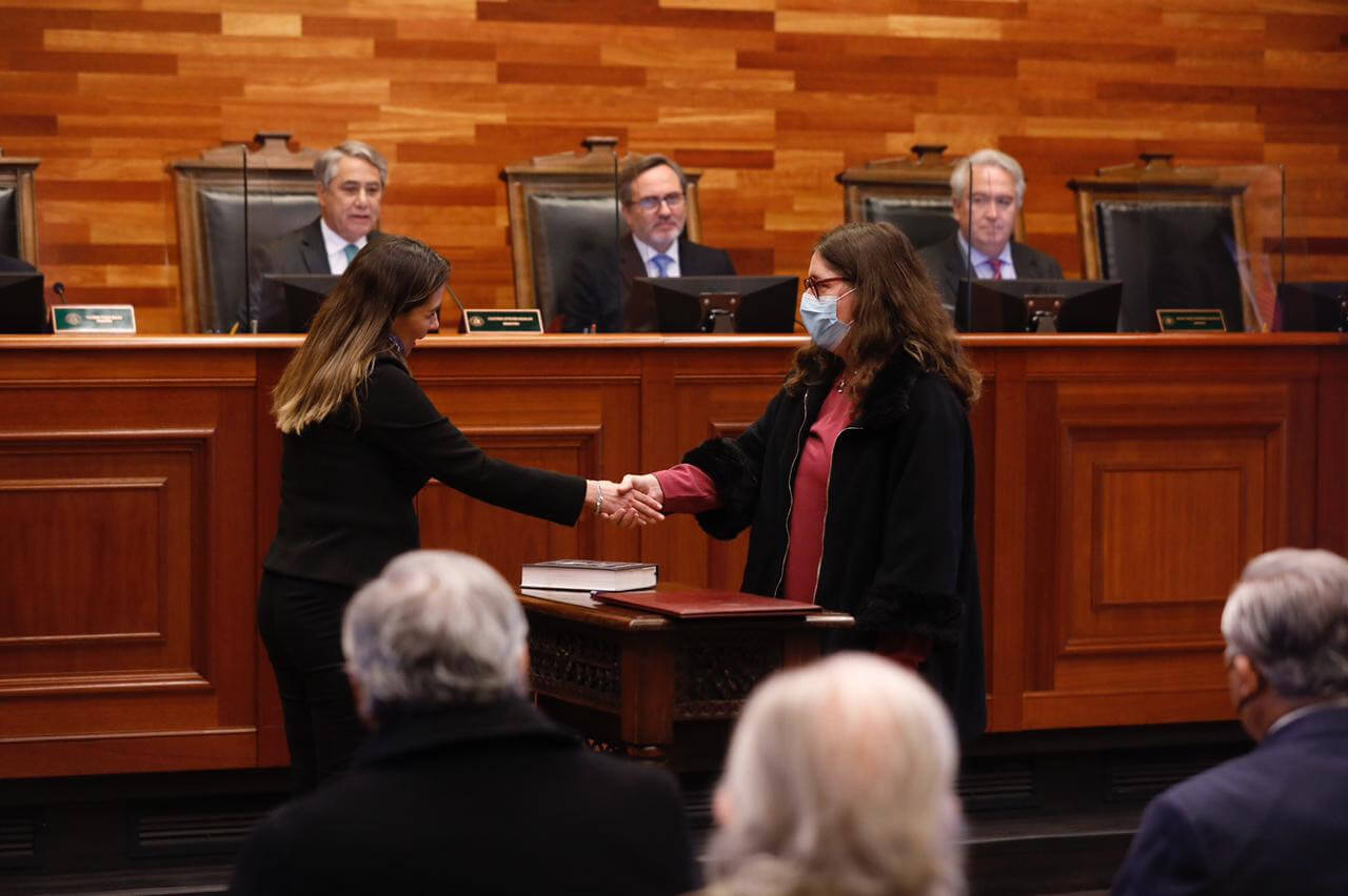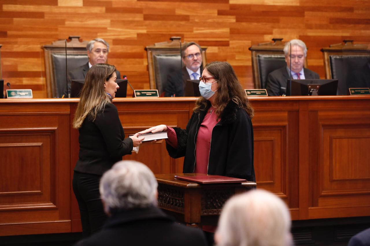 Pasadas las 12:30 horas de este lunes 9 de mayo, por primera vez en la historia de esta alta Magistratura, conjuntamente dos destacadas mujeres abogadas y con amplia experiencia académica, fueron investidas en el cargo de Ministras.